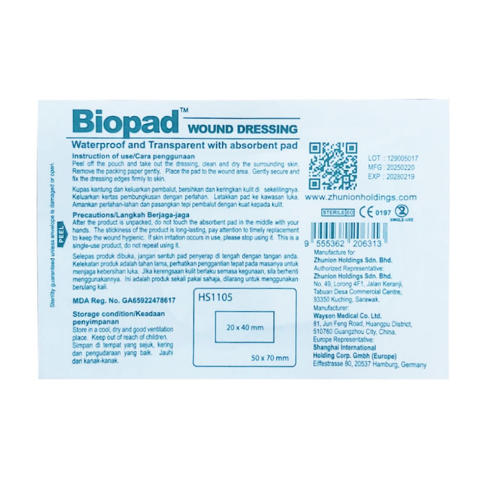 The sterile self-adhesive transparent wound dressings are made of semi-permeable, waterproof polyurethane film, protect against bacterial penetration with highly absorbent pad which does not stick to the wound.