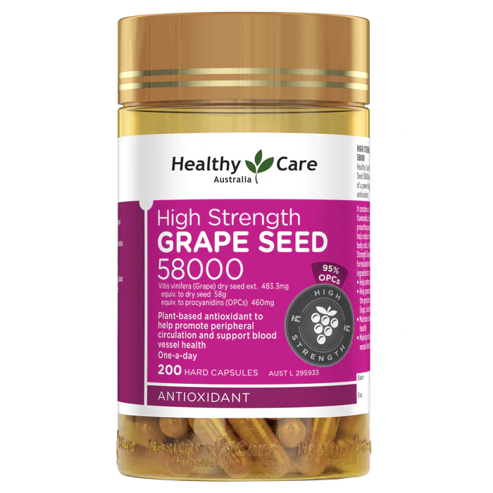 Healthy Care High Strength Grape Seed 58000 is an advanced formula of a powerful plant-based antioxidant. It contains a rich natural source of flavonoids, including oligomeric proanthocanidins (OPCs), which help reduce free radical damage to body cells.