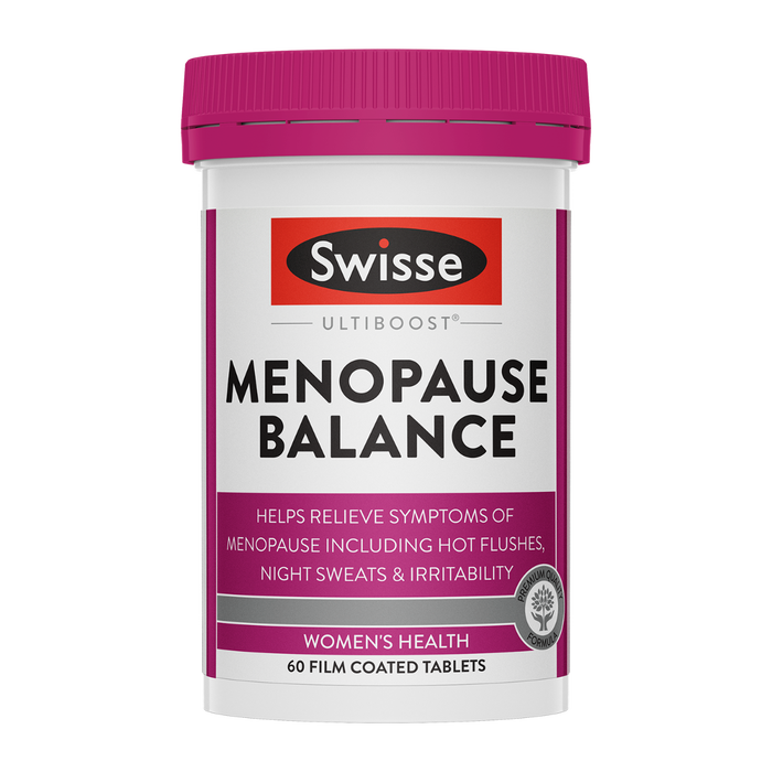 Embrace your transition through menopause with Swisse Ultiboost Menopause Balance. Our carefully formulated supplement, containing black cohosh, is tailored to relieve common symptoms associated with menopause like hot flushes and night sweats. Infused with vitamin D and calcium, it also supports healthy bones and teeth, particularly with increased calcium needs post-menopause. Swisse Ultiboost Menopause Balance offers a convenient approach to maintaining your wellbeing during this significant phase of life, supporting your journey to balance and comfort every day.