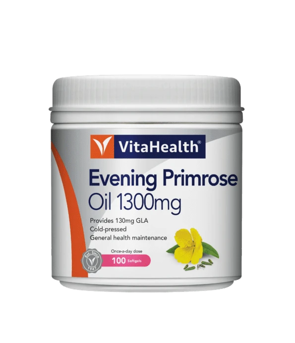VitaHealth Evening Primrose Oil 1300mg is formulated with high-strength evening primrose oil (EPO), providing a natural source of gamma-linolenic acid (GLA).